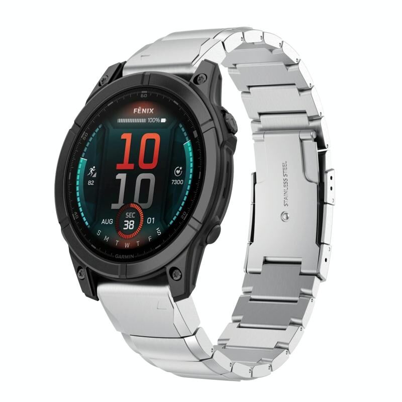 Για το Garmin Fenix 8 AMOLED 51mm Tortoise Shell 26mm από ανοξείδωτο ατσάλι (Sliver)