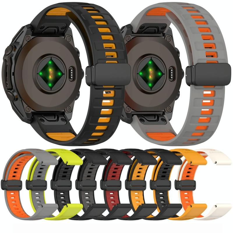 Για Garmin Fenix 8 AMOLED 51mm Διχρωμό Μαγνητικό Λουράκι Σιλικόνης για Ρολόι (Μαύρο)