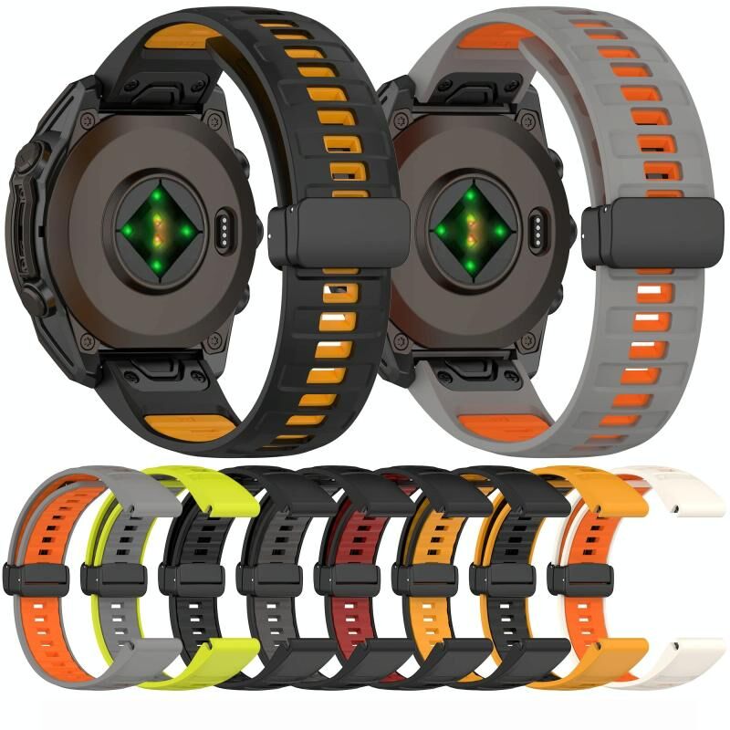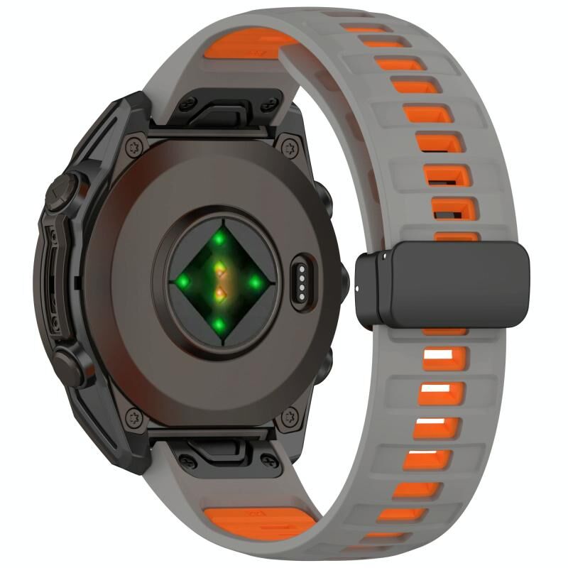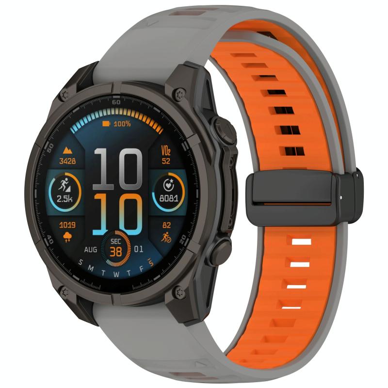 Για Garmin Fenix 8 AMOLED 51mm Διχρωμό Μαγνητικό Λουράκι Σιλικόνης για Ρολόι (Αστρόφωτο+Πορτοκαλί)