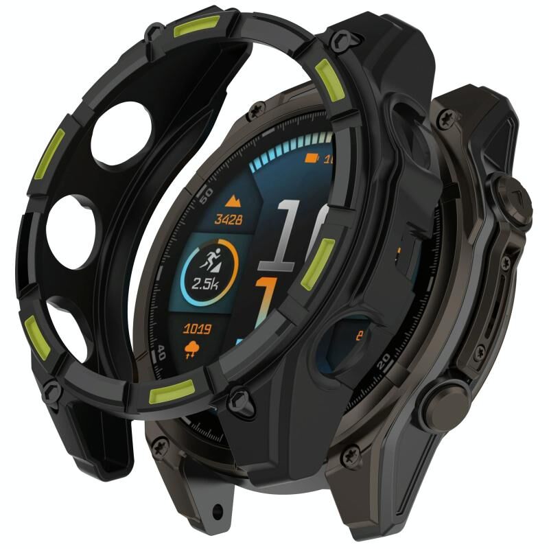 Για Garmin Fenix 8 MIP 47mm ηλιακή πανοπλία κοίλο TPU μισή κάλυψη υπόθεση ρολόι ηλιακή έκδοση (μαύρο πράσινο)