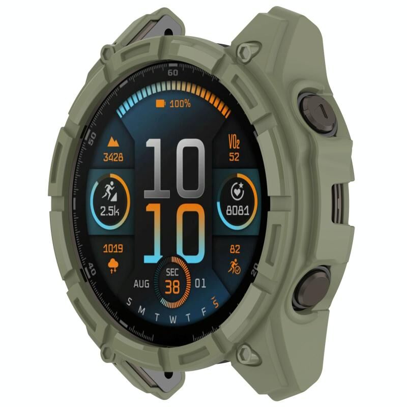 Για Garmin Fenix 8 MIP 47mm ηλιακή πανοπλία κοίλο TPU μισή κάλυψη υπόθεση ρολόι ηλιακή έκδοση (Jungle Green)