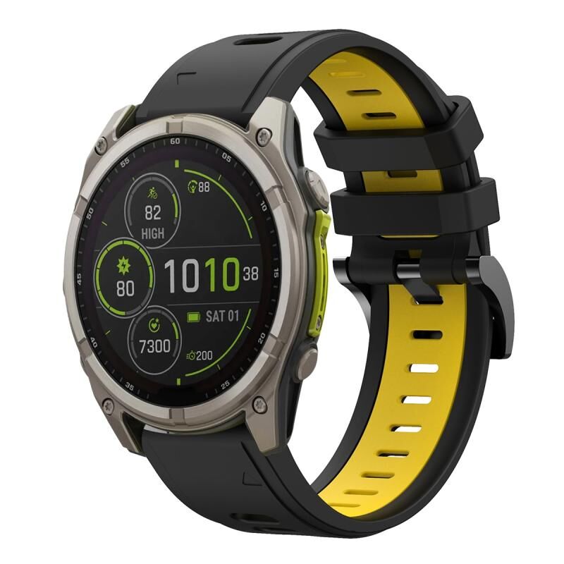 Για Garmin Fenix 8 MIP 47mm Αθλητισμός Δύο χρώμα 22mm σιλικόνης ρολόι μπάντα (μαύρο + κίτρινο)