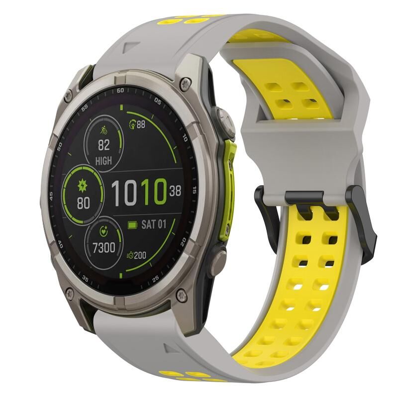 Για το Garmin Fenix 8 MIP 47mm Δύο χρώματα Αντίστροφη πόρπη 22mm σιλικόνης ζώνη ρολογιού (γκρι + κίτρινο)