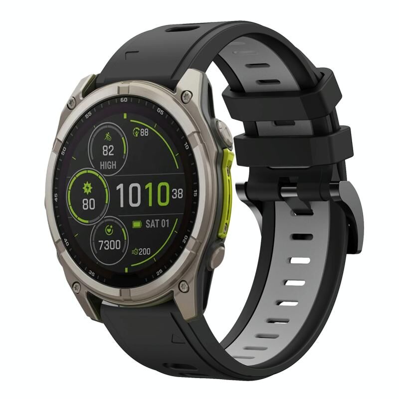 Για το Garmin Fenix 8 MIP 51mm Αθλητισμός Δύο χρώματα 26mm σιλικόνης ρολόι μπάντα (μαύρο + γκρι)