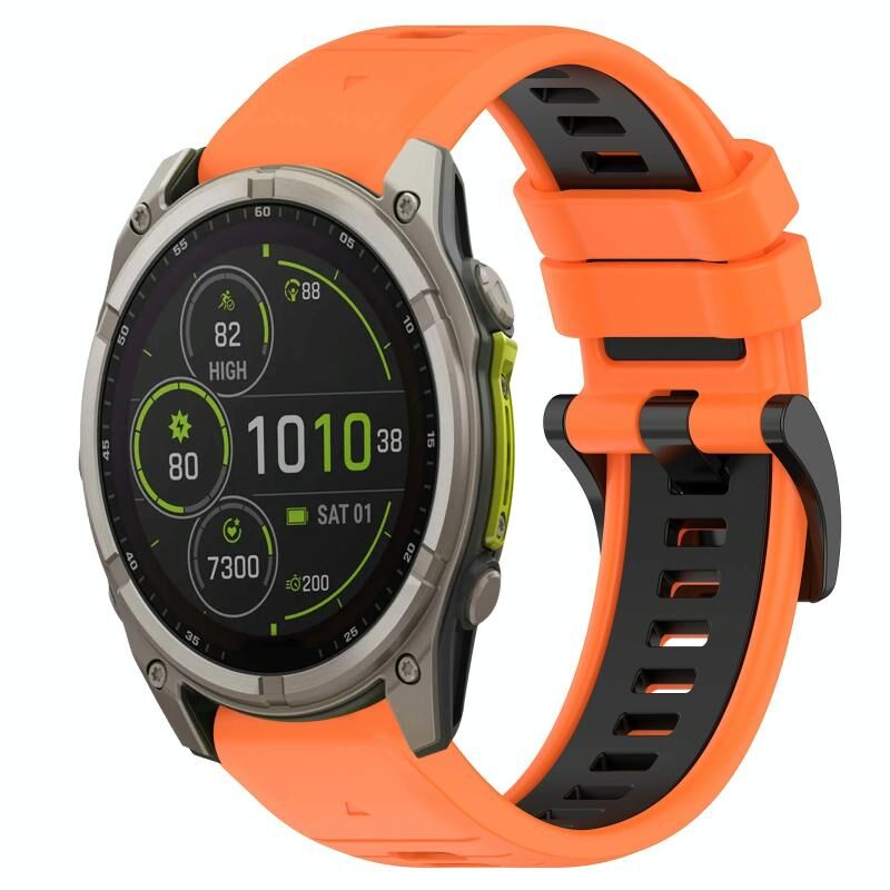 Για το Garmin Fenix 8 MIP 51mm Αθλητισμός δύο χρωμάτων 26mm σιλικόνης ρολόι μπάντα (πορτοκαλί + μαύρο)