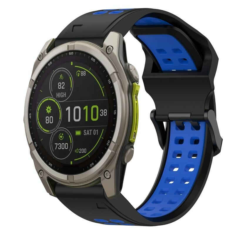 Για το Garmin Fenix 8 MIP 51mm Δύο χρώματα αντίστροφη πόρπη 26mm σιλικόνης ρολόι μπάντα (μαύρο + μπλε)