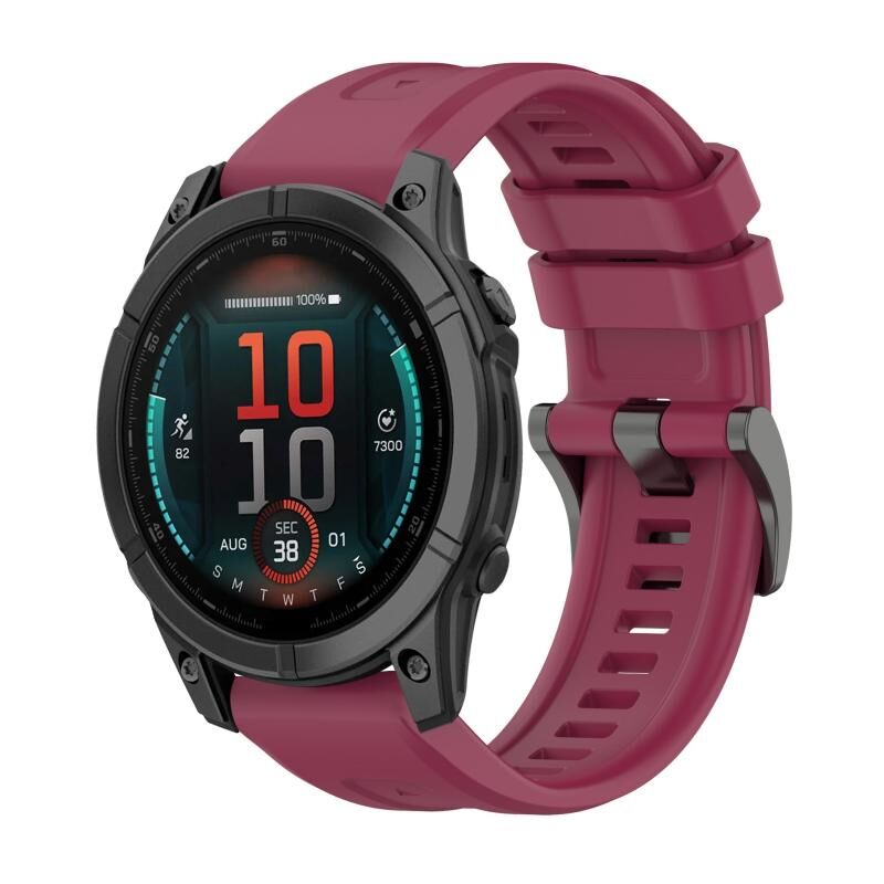 Για το Garmin Fenix E 47 χιλιοστά καθαρό χρώμα χάλυβα πόρπη 22 χιλιοστά σιλικόνης ρολόι μπάντα (κόκκινο κρασί)