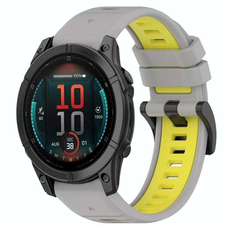 Για Garmin Fenix E 47mm Αθλητικό Διχρωμικό Λουράκι Σιλικόνης 22mm (Γκρι+Κίτρινο)
