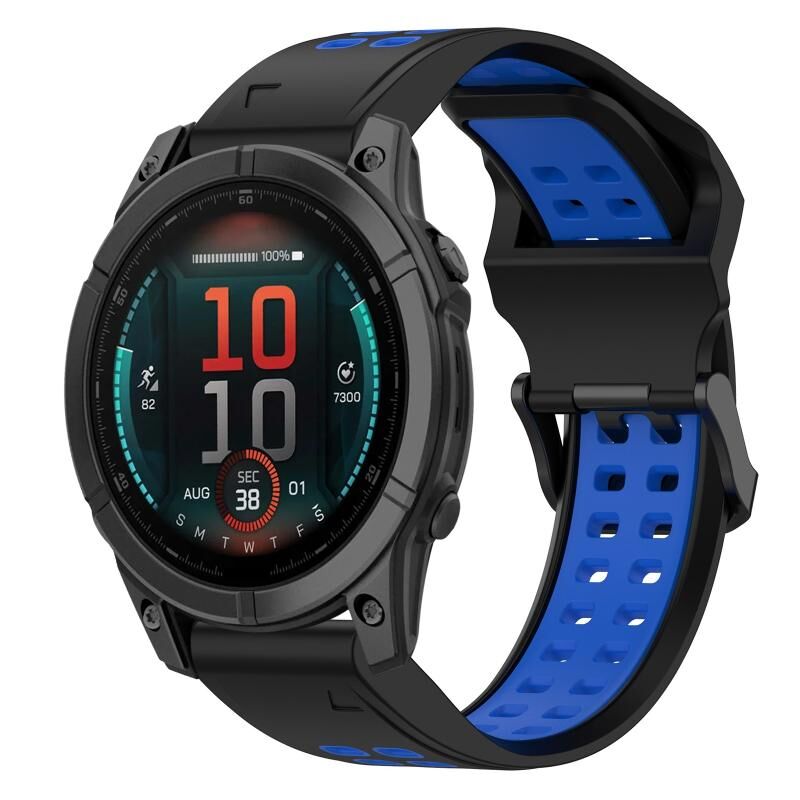 Για το Garmin Fenix E 47mm Δύο χρώματα αντίστροφη πόρπη 22mm σιλικόνης ρολόι μπάντα (μαύρο + μπλε)