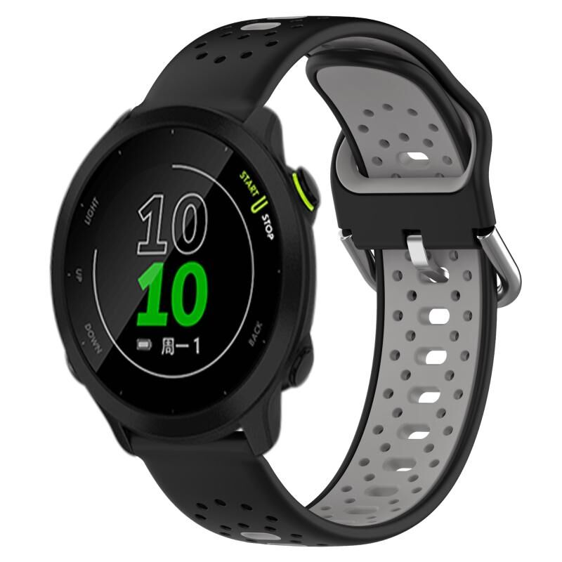 Για το Garmin Forerunner 158 20mm αναπνεύσιμο σιλικόνης ρολόι σιλικόνης δύο χρωμάτων (μαύρο+γκρι)
