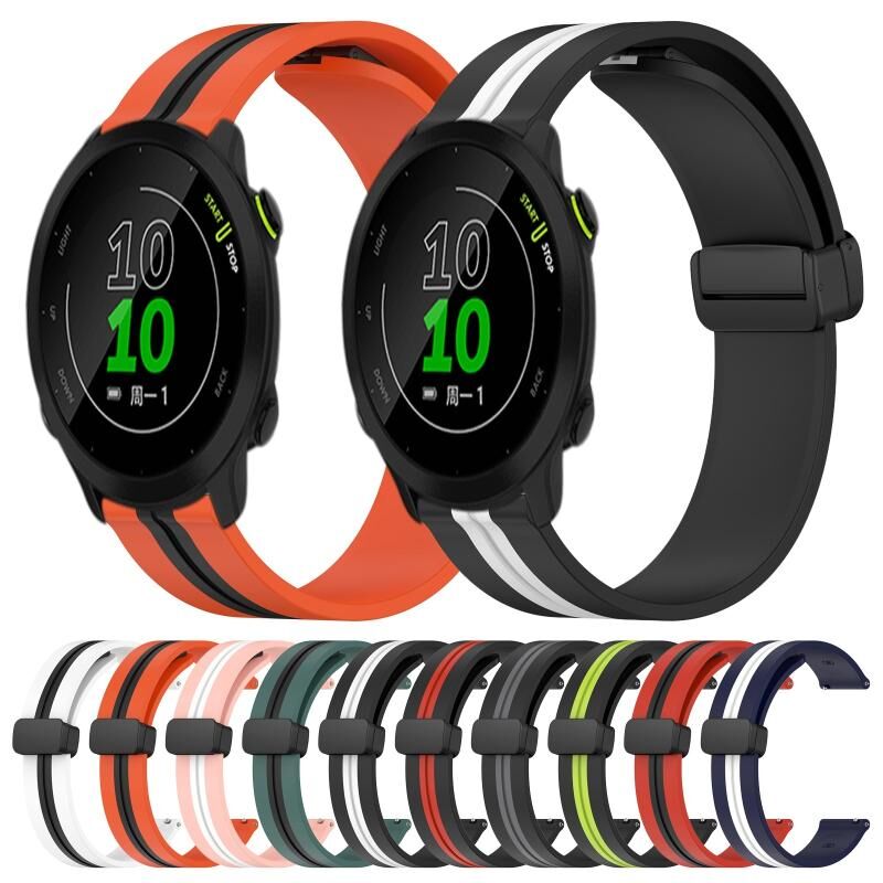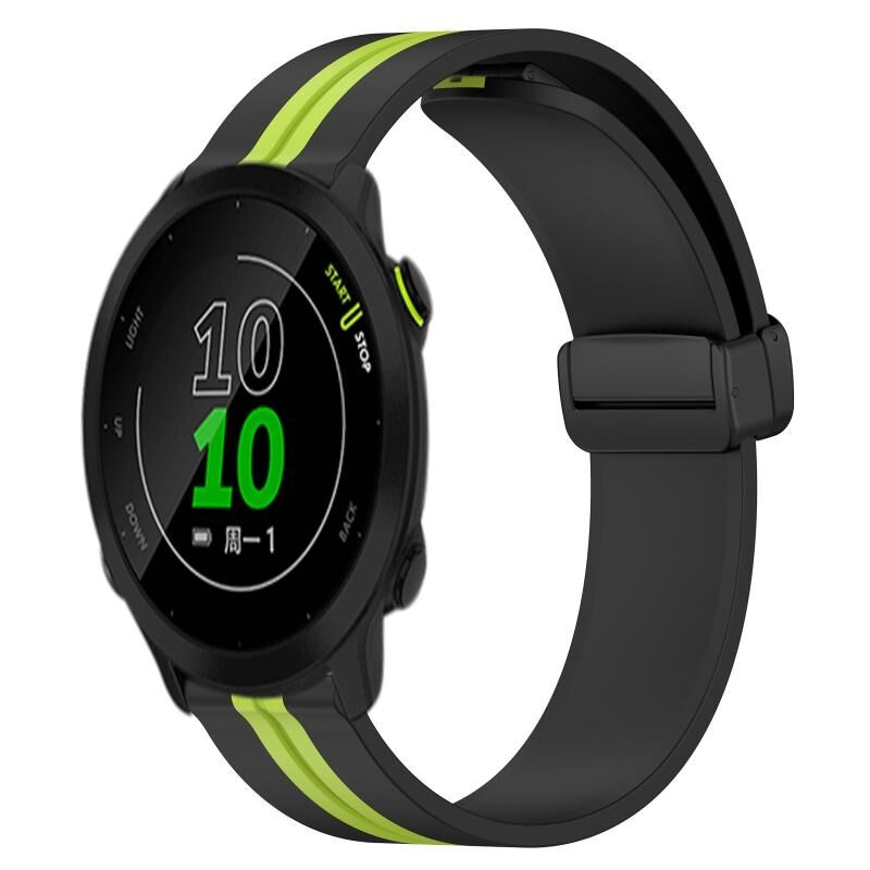 Για Garmin Forerunner 158 20mm Πτυσσόμενο μαγνητικό κούμπωμα ζώνη ρολογιού σιλικόνης (Μαύρο+Lime Green)