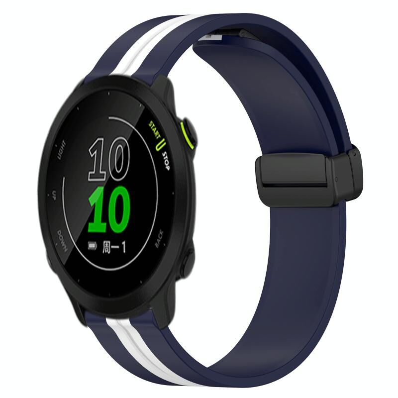 Για Garmin Forerunner 158 20mm Πτυσσόμενο μαγνητικό κούμπωμα ζώνη ρολογιού σιλικόνης (Μπλε + Λευκό)