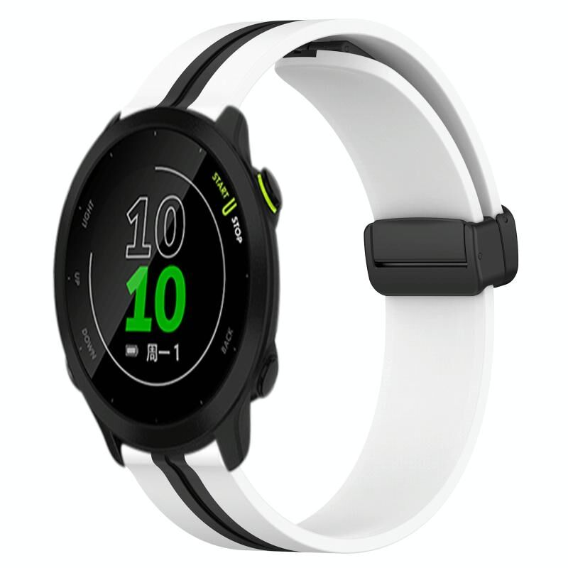 Για Garmin Forerunner 158 20mm Πτυσσόμενο μαγνητικό κούμπωμα ζώνη ρολογιού σιλικόνης (Λευκό+Μαύρο)