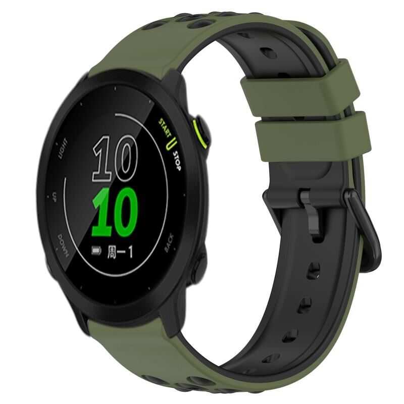 Για το Garmin Forerunner 158 20 χιλιοστά Δύο χρώματα πορώδη σιλικόνη ρολόι μπάντα (Στρατού πράσινο + μαύρο)