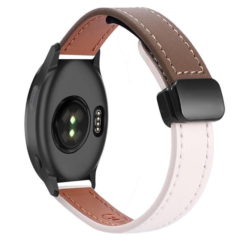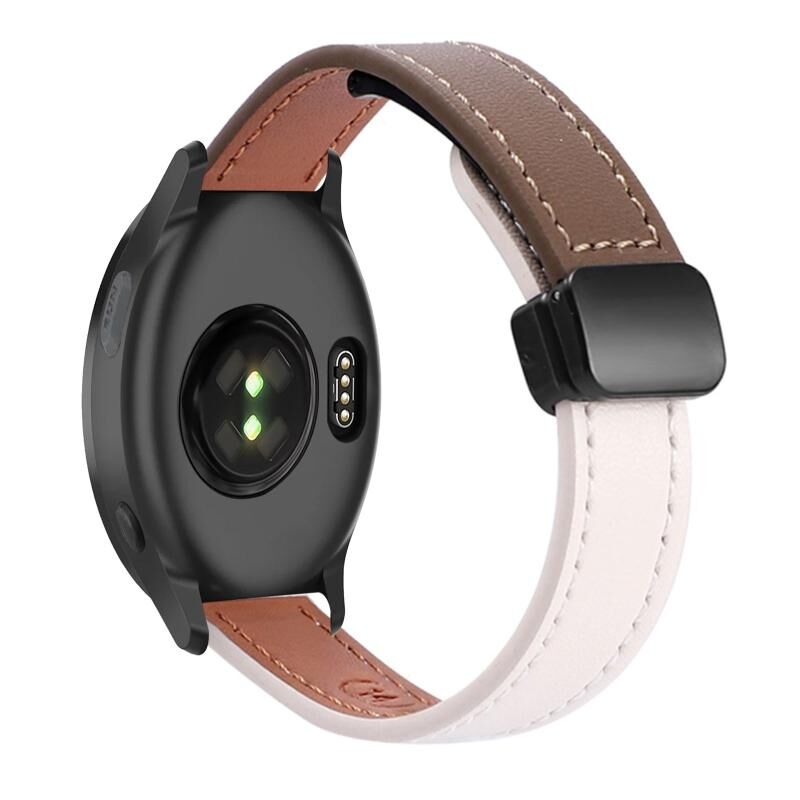 For Garmin Forerunner 165 Music Slim Magnetic Buckle 20mm Microfiber Leather Watch Band(Apricot+Caramel Macchiato)