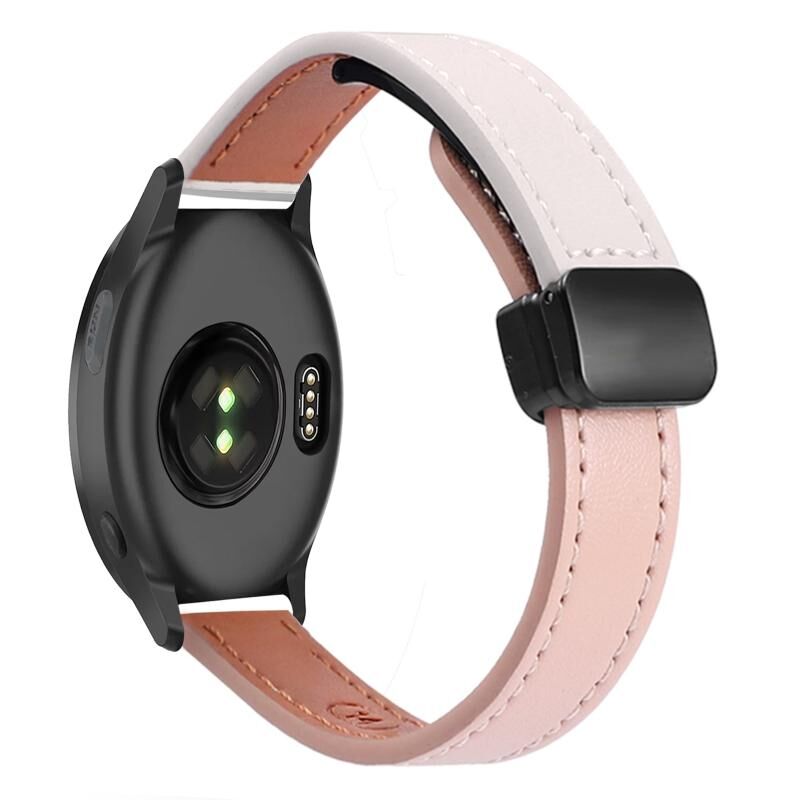 Για Garmin Forerunner 165 Slim μαγνητική πόρπη 20mm Microfiber Leather Watch Band (ροζ+απρίκο)