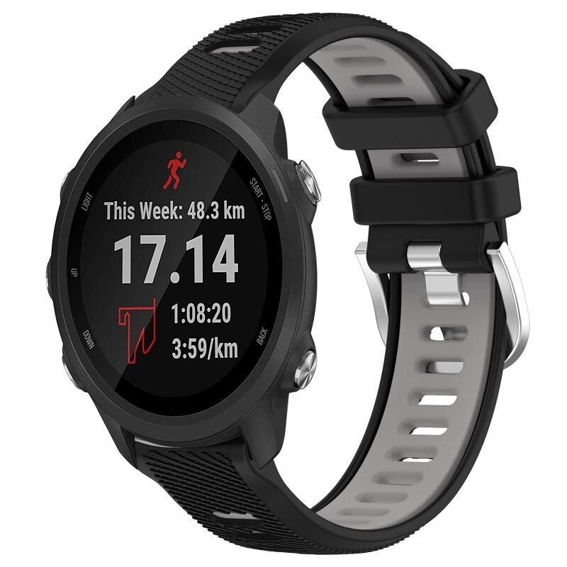 Για Garmin Forerunner 245 20mm Αθλητισμός Δύο-χρώμα χάλυβα πόρπη σιλικόνης ρολόι μπάντα (μαύρο + γκρι)