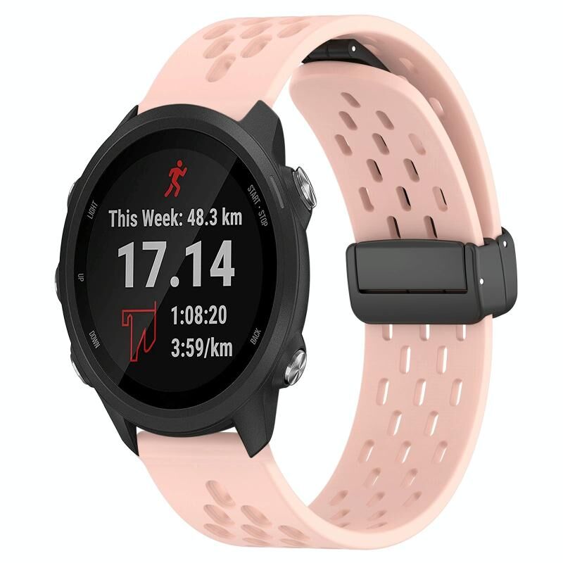 Για Garmin Forerunner 245 Music 20mm Πτυσσόμενο μαγνητικό κούμπωμα ζώνη ρολογιού σιλικόνης (ροζ)