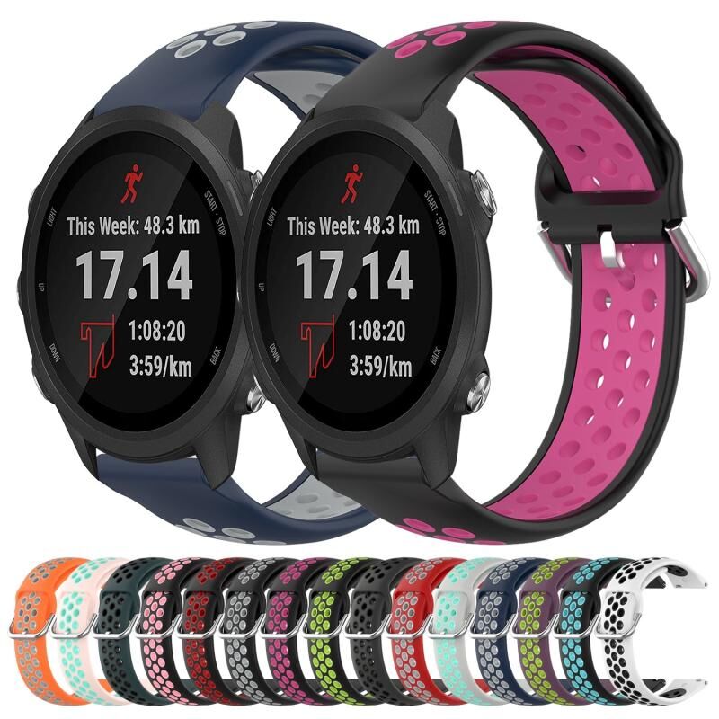 Για το Garmin Forerunner 245 Music 20mm διάτρητη αναπνεύσιμη αθλητική ζώνη ρολογιού σιλικόνης (ροζ+ Water Duck)