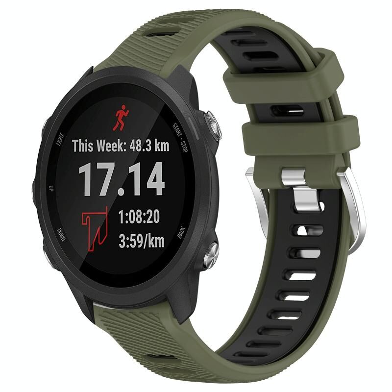 Για Garmin Forerunner 245 Music 20mm Αθλητισμός Δύο χρώματα χάλυβα πόρπη σιλικόνης ρολόι μπάντα (Στρατού πράσινο + μαύρο)