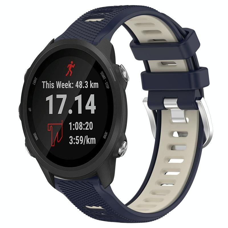 Για Garmin Forerunner 245 Music 20mm Αθλητισμός Δύο χρώματα χάλυβα πόρπη σιλικόνης ρολόι μπάντα (Midnight Blue + Starlight)