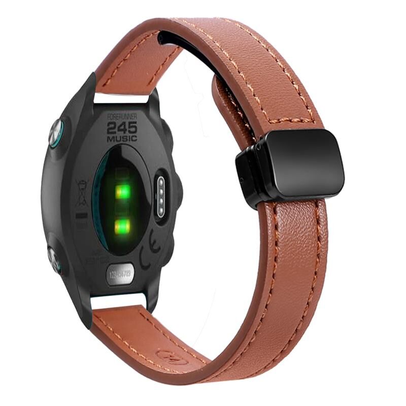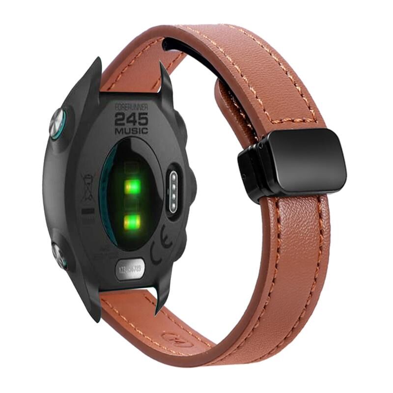 Για το Garmin Forerunner 245 Music Slim Μαγνητική Πόρπη 20mm Microfiber Leather Watch Band (Mocha Brown)