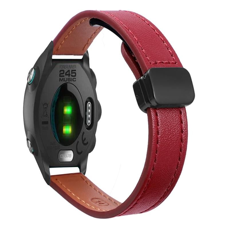 Για Garmin Forerunner 245 Music Slim Μαγνητική Πόρπη 20mm Microfiber Leather Watch Band (Wine Red)