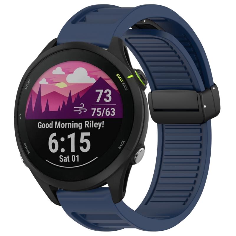 For Garmin Forerunner 255 22mm Foldable Magnetic Buckle Silicone Watch Band(Midnight Blue)