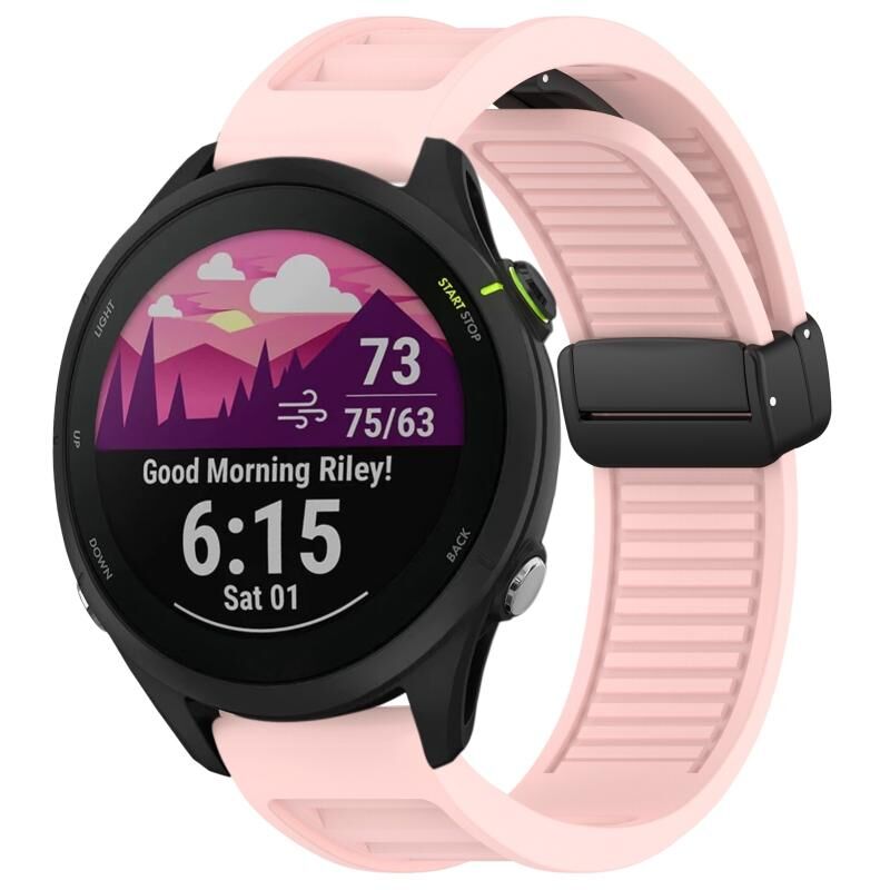 For Garmin Forerunner 255 22mm Foldable Magnetic Buckle Silicone Watch Band(Pink)