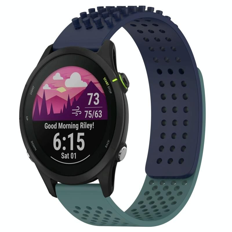 Λουράκι Garmin Forerunner 255 22mm, Αναπνεύσιμο Σιλικόνης με 3D Σημεία (Μπλε Μεσονυχτί+Λαδί)