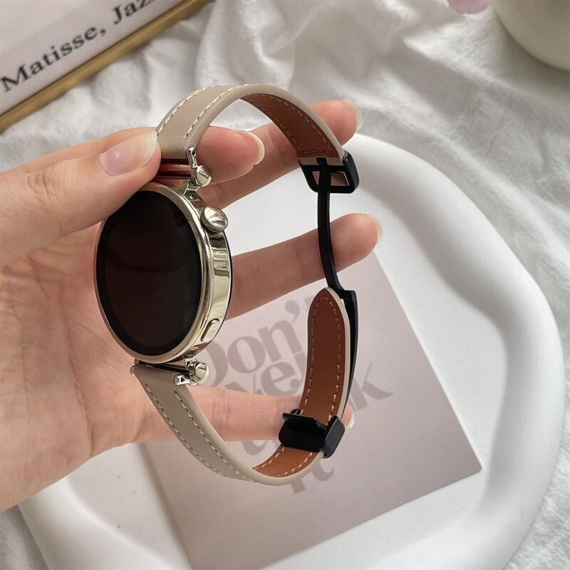 For Garmin Forerunner 255 22mm Slim Magnetic Buckle Microfiber Leather Watch Band(Cream Apricot)