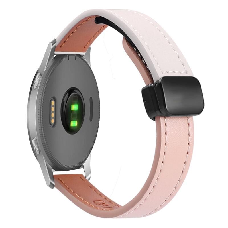 For Garmin Forerunner 255 22mm Slim Magnetic Buckle Microfiber Leather Watch Band(Pink+Apricot)