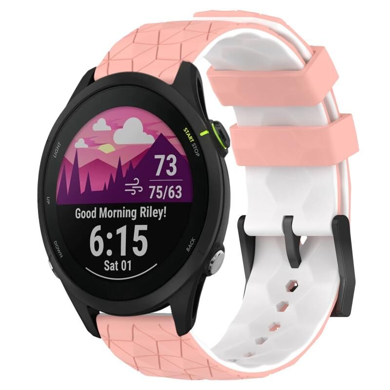 Για Garmin Forerunner 255 Music 22mm ποδοσφαίρου μοτίβο δύο χρωμάτων σιλικόνης ρολόι μπάντα (ροζ + λευκό)