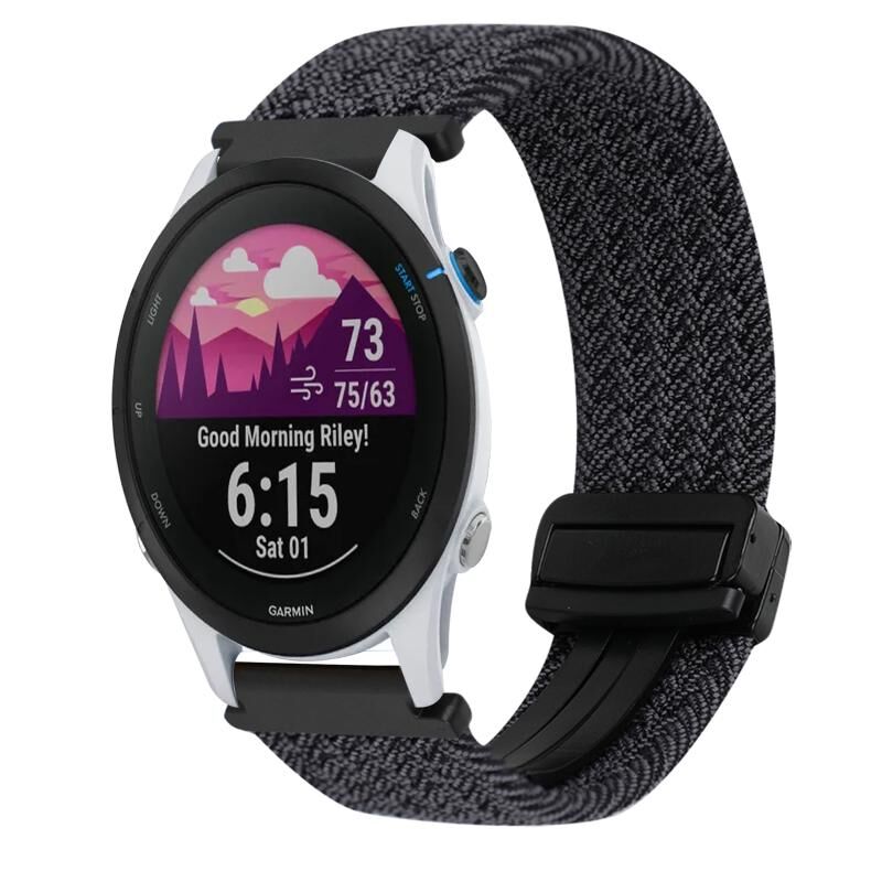 Για Garmin Forerunner 255 Music 22mm μαγνητική πόρπη πλεκτή ζώνη ρολογιού (μαύρο γραφίτη)