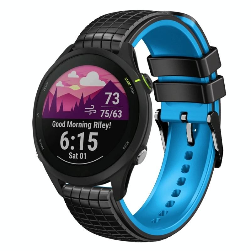 Για το Garmin Forerunner 255 Music 22mm Mesh Δύο χρώματα σιλικόνης ρολόι μπάντα (Μαύρο Lime)