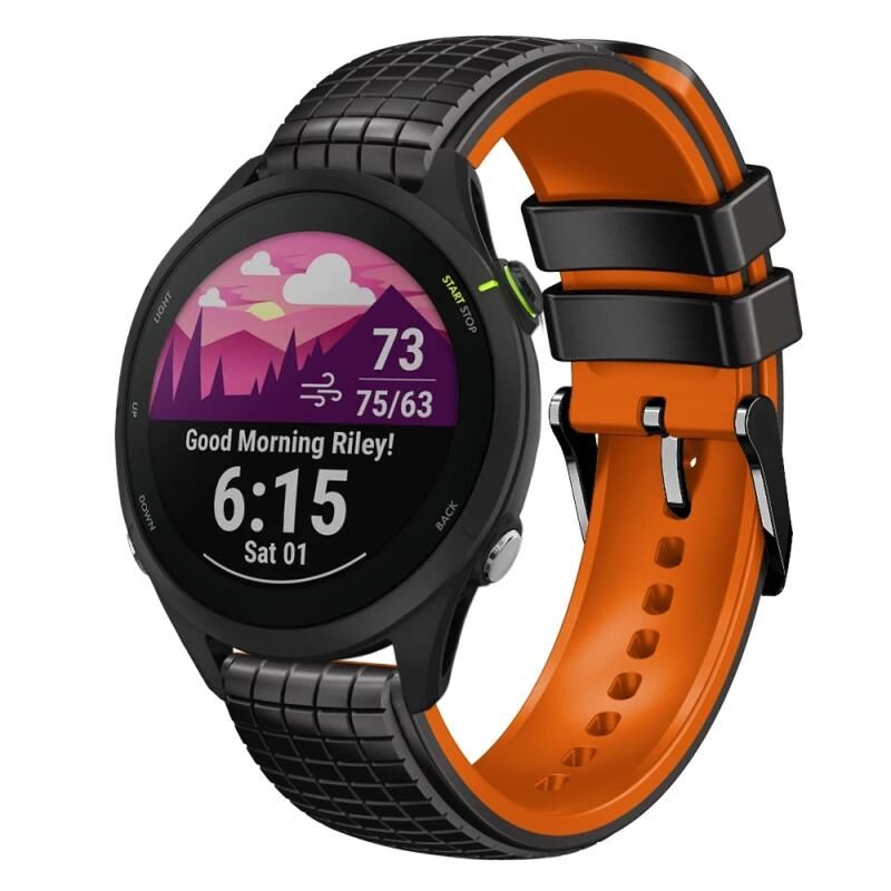 Για Garmin Forerunner 255 Music 22mm Mesh Δύο χρώματα σιλικόνης ρολόι μπάντα (πορτοκαλί μαύρο)
