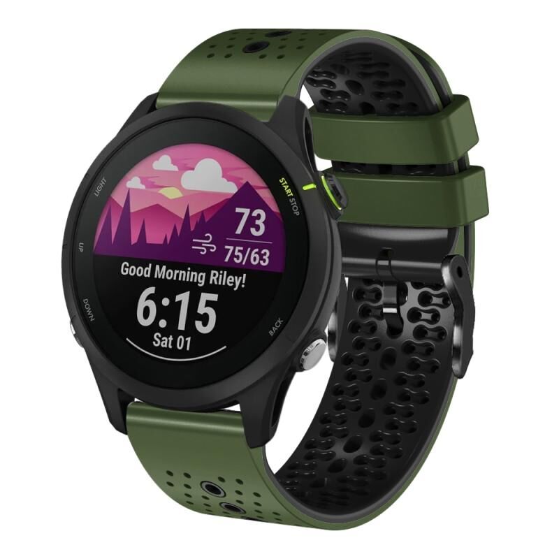 Για Garmin Forerunner 255 μουσική 22 χιλιοστά διάτρητη ζώνη ρολογιού σιλικόνης δύο χρωμάτων (πράσινο στρατού + μαύρο)