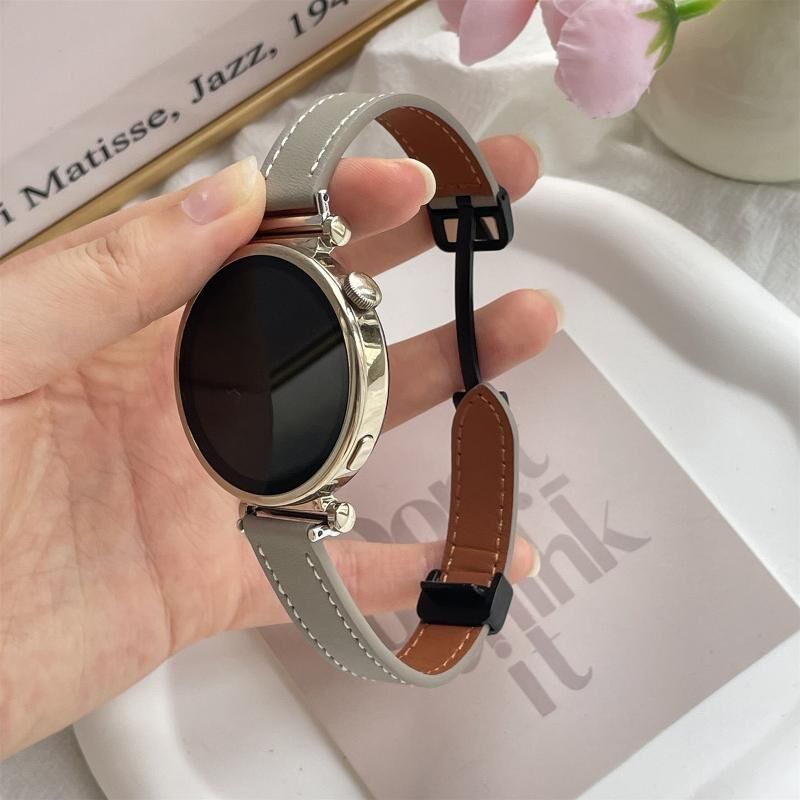 For Garmin Forerunner 255 Music 22mm Slim Magnetic Buckle Microfiber Leather Watch Band(Calf Elephant Gray)