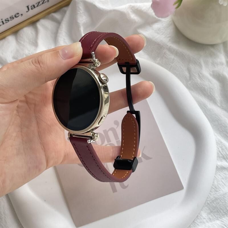 For Garmin Forerunner 255 Music 22mm Slim Magnetic Buckle Microfiber Leather Watch Band(Wine Red)
