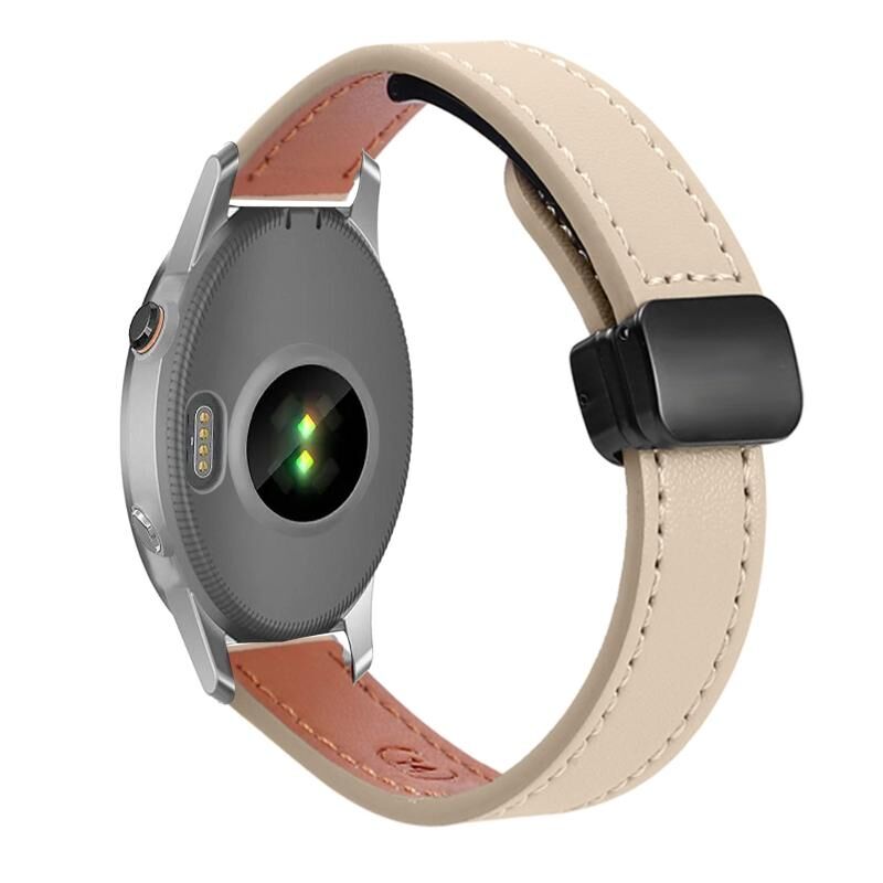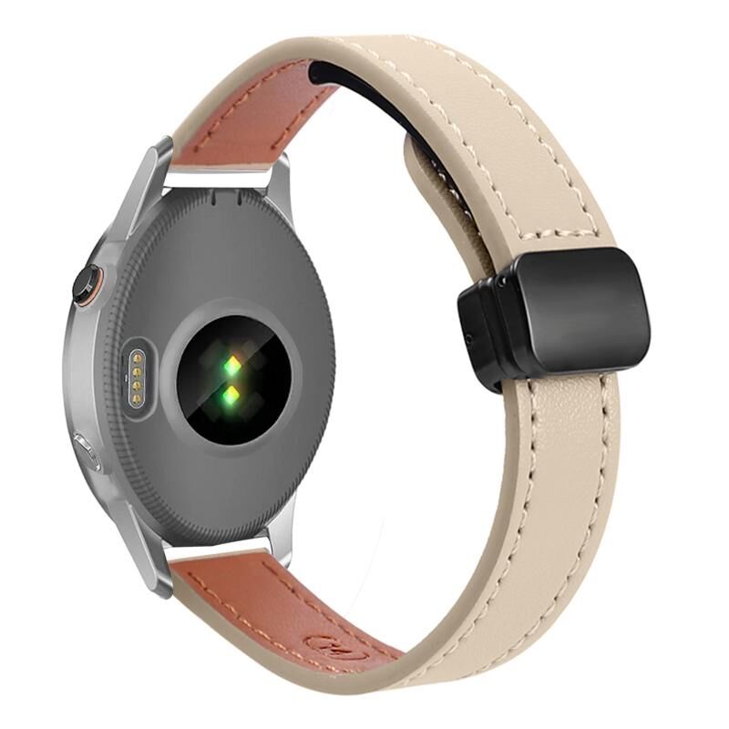 Για το Garmin Forerunner 255S 18mm λεπτό μαγνητικό λουράκι από δέρμα μικροϊνών (κρέμα βερίκοκο)