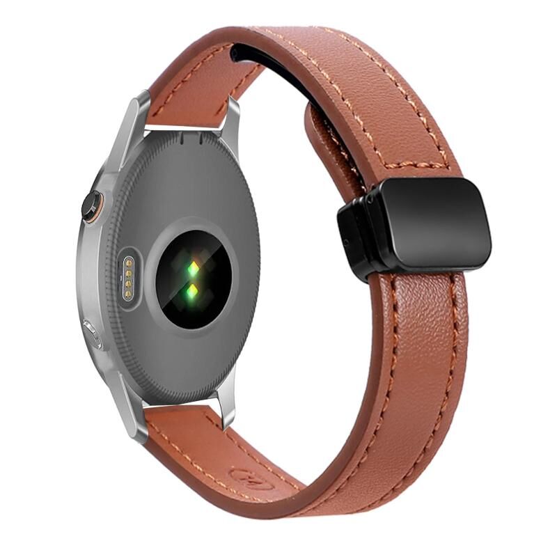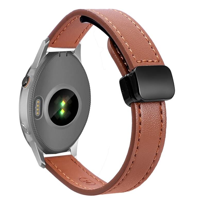 Για το Garmin Forerunner 255S 18mm λεπτό μαγνητικό λουράκι από δερμάτινο λουράκι μικροϊνών (Mocha Brown)