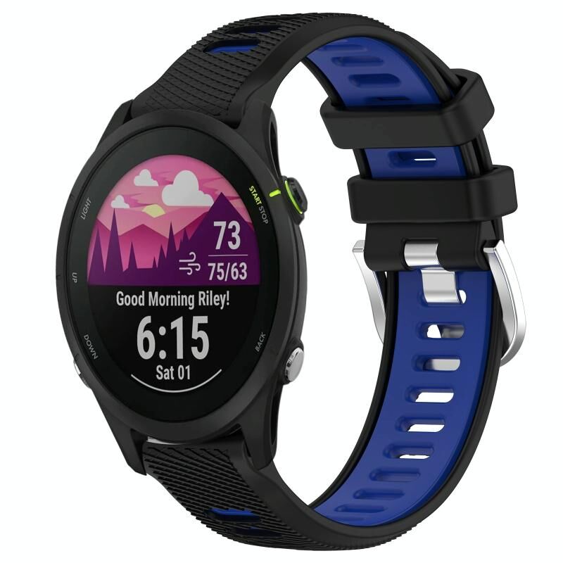 Για Garmin Forerunner 255S 18mm Αθλητισμός Δύο χρώματα χάλυβα πόρπη σιλικόνης ρολόι μπάντα (μαύρο + μπλε)