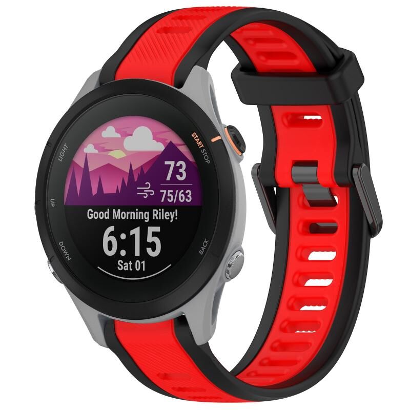 Για Garmin Forerunner 255S 18mm Δύο χρώματα υφή σιλικόνης ρολόι μπάντα ρολόι (κόκκινο + μαύρο)