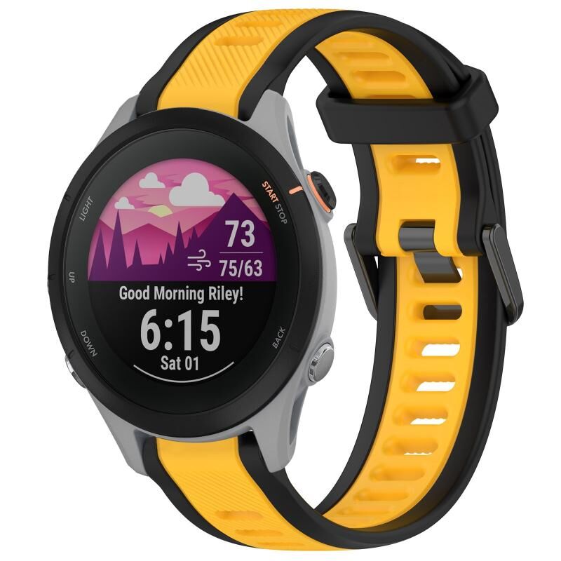 Για Garmin Forerunner 255S 18mm Δύο χρώματα υφή σιλικόνης ρολόι μπάντα ρολόι (κίτρινο + μαύρο)