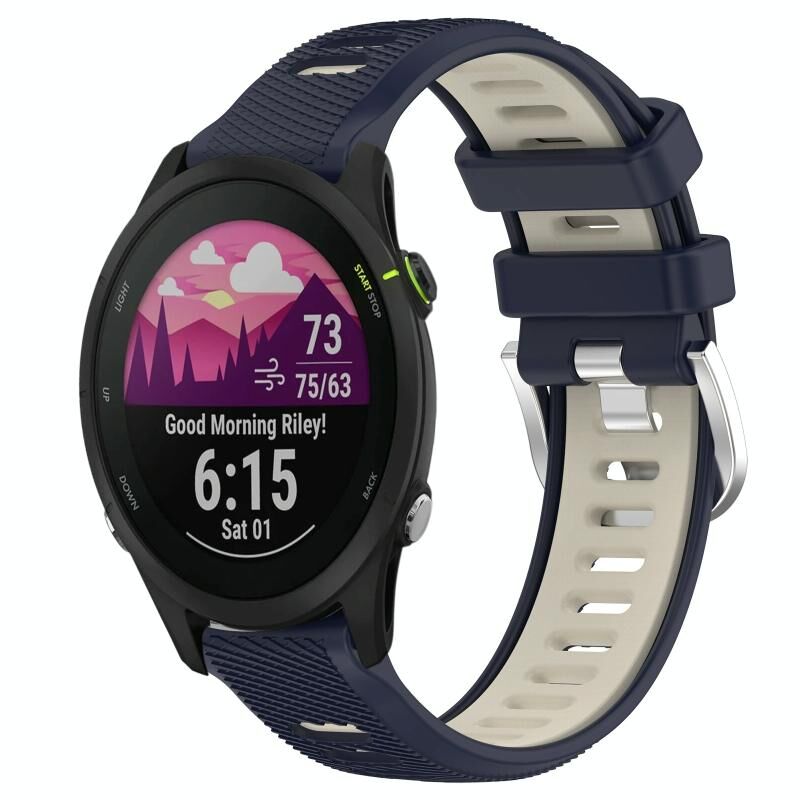 Για Garmin Forerunner 255S Music 18mm Αθλητισμός Δύο χρώματα χάλυβα πόρπη σιλικόνης ρολόι μπάντα (Midnight Blue + Starlight)