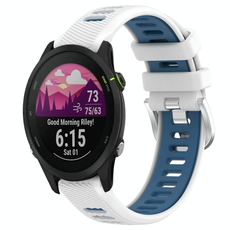 Για Garmin Forerunner 255S Music 18mm Αθλητισμός Δύο χρώματα χάλυβα πόρπη σιλικόνης ρολόι μπάντα (λευκό + μπλε)