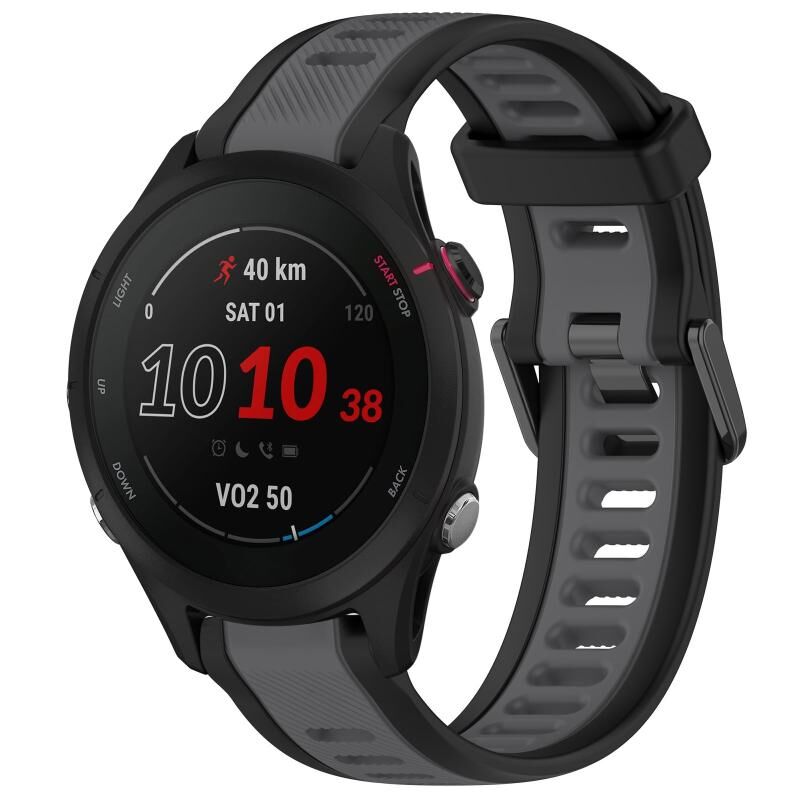 Για Garmin Forerunner 255S Music 18mm Δύο χρώματα υφή σιλικόνης ρολόι μπάντα ρολόι (γκρι + μαύρο)