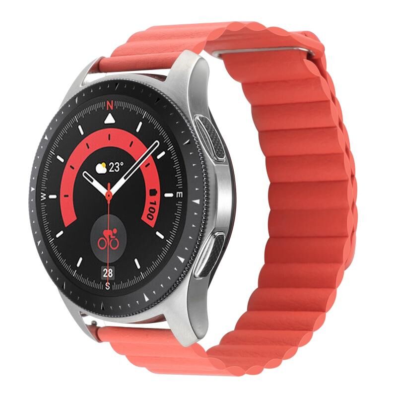Για Garmin Forerunner 255S / Venu 2S 18mm Universal Magnetic Loop Leather Watch Band (Πορτοκαλί)