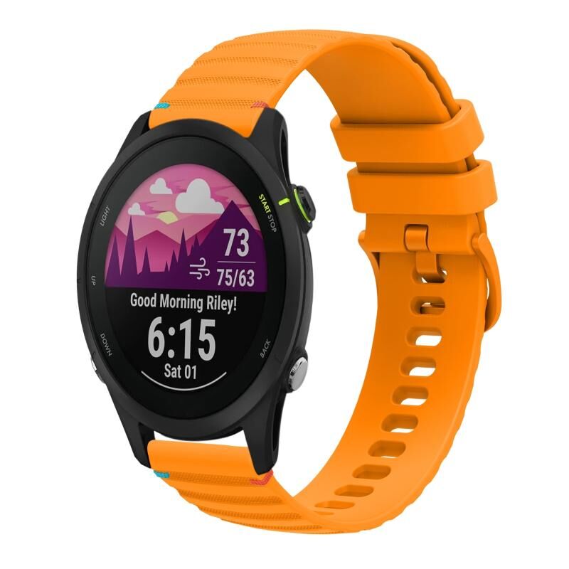For Garmin Forerunner 255S Wavy Dotted Stitched 18mm Silicone Watch Band(Amber Yellow)