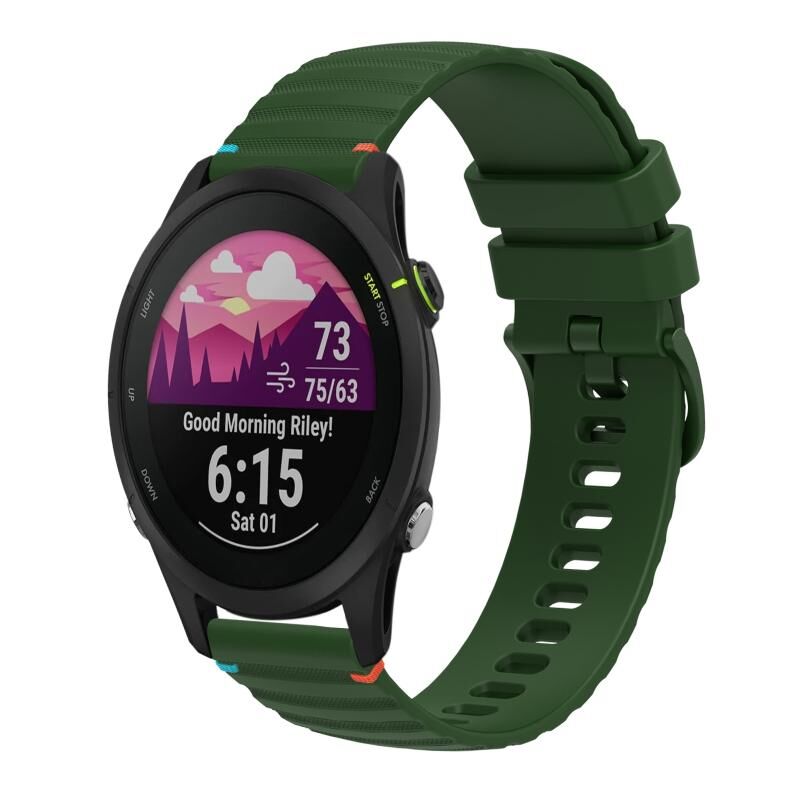 For Garmin Forerunner 255S Wavy Dotted Stitched 18mm Silicone Watch Band(Army Green)